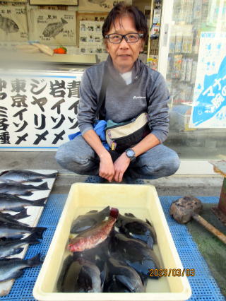 | 3月12日 メジナ40cm 1,2kg 藤沢市 金子様 3月12日 黒鯛&カワハギ 足立区 岩本様 | |