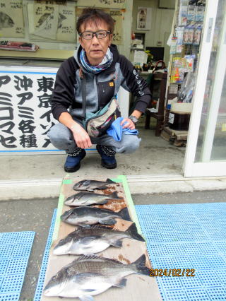 | 2月24日メジナ43cm1.5kg藤沢市橋本様 2月26日黒鯛50cm1.8kg横浜市深沢様 | |